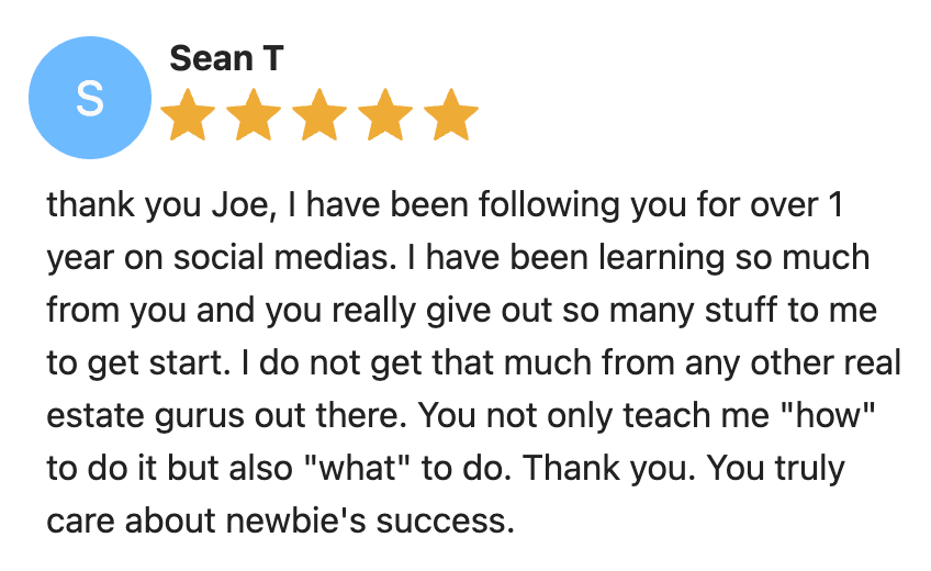 Don’t get me wrong… ‘Deals With Joe’ has everything you need to do your first deal.